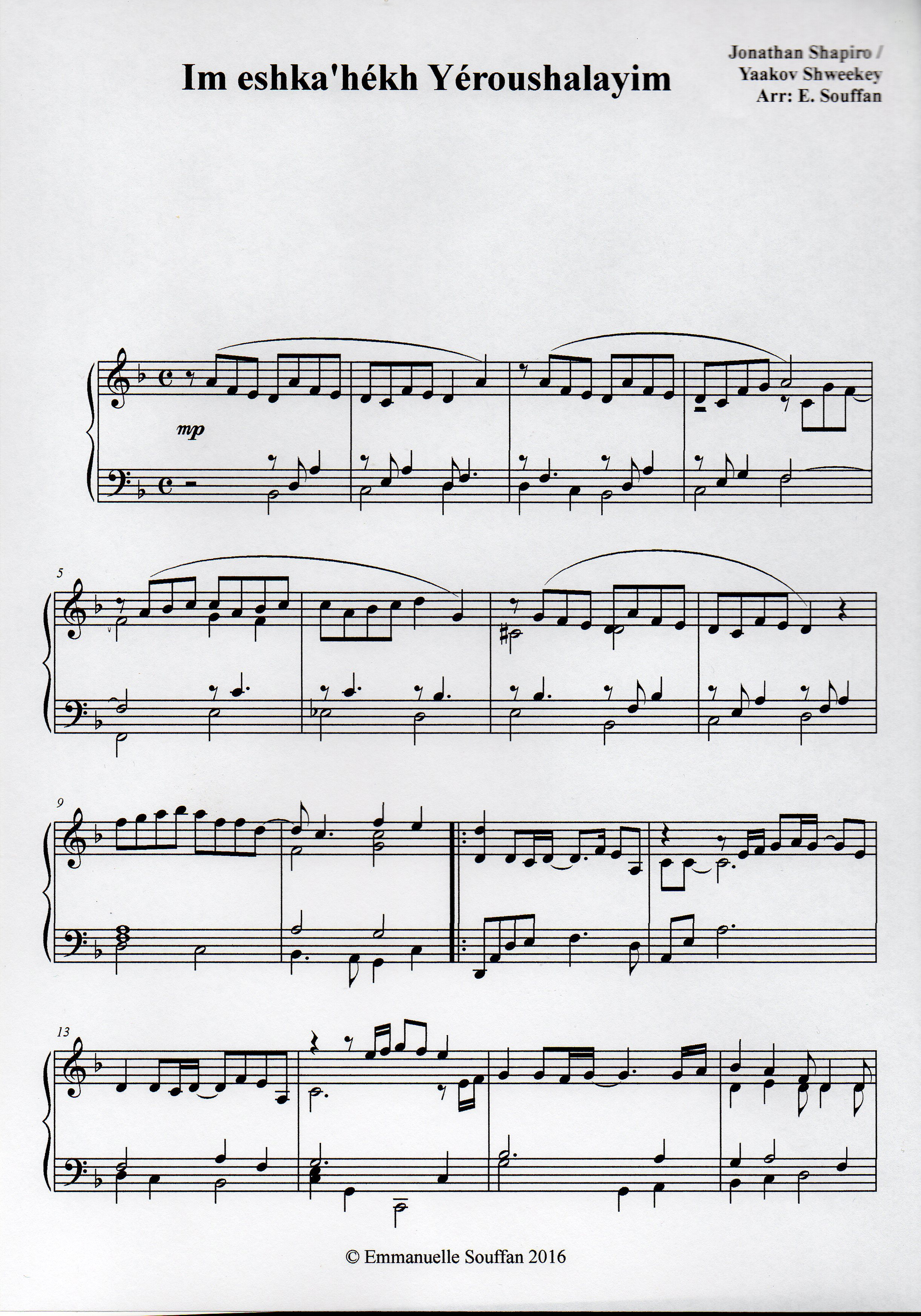 Im eshka’hekh shwekey Arr © E SOUFFAN page 1 Published 12 juillet 2016 at 2436 × 3480 in Im eshka’hékh Yéroushalayim